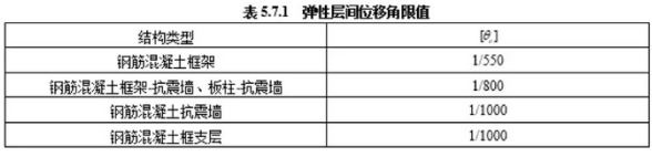 該标準第5.7.1條要(yào)求,結構進行(xíng)性能(néng)要(yào)求為(wèi)I、II的(de)彈性變形驗算(suàn✘)時(shí),矩形斷面應采用(yòng)最大(dà)彈性層間(jiān)位移角作(zuò)為(wèiε)指标,并滿足下(xià)式要(yào)求: